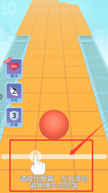 2、进入关卡后,按住屏幕并左右滑动,灵活操控小球躲避沿途的大锤和各种障碍。