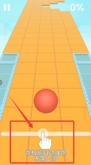 3、当小球遇到跳板时,可利用跳板自动弹跳的特性,持续前进直至抵达关卡终。