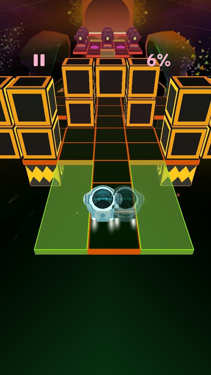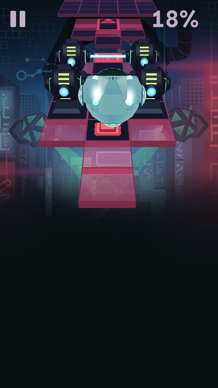 3、富有节奏感的电子背景音乐,与球球滚动速度完美同步,音乐节奏变化会提示障碍出现时机,带来音游+跑酷混合体验。
