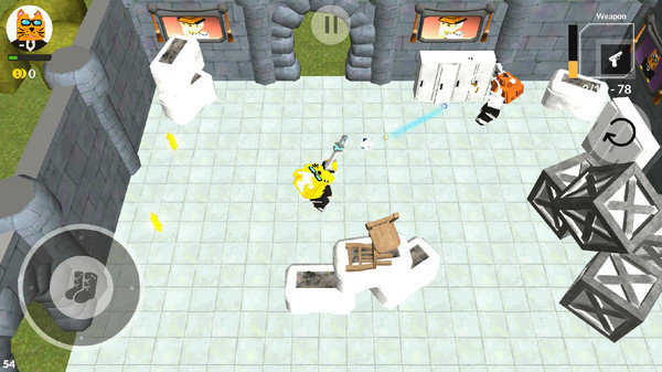 1、便捷操作方式:采用虚拟摇杆操作,让玩家能灵活控制角色移动与射击,轻松上手展开猫狗大战,无论是新手还是资深玩家都能快速适应。