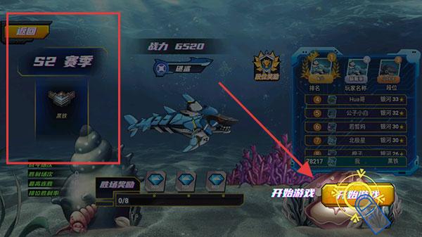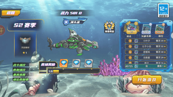 3、通过 “开始游戏” 参与 S2 赛季,完成 “胜场奖励” 等任务,点击 “宠物竞技” 进入 PVP 对战(如 “海底深渊”“排位赛” ),用组装好的机甲鲨鱼战斗。