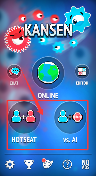 1、打开游戏,在主界面自由选择“HOTSEAT”(双人对战)或“vs. AI”(人机对战)模式。