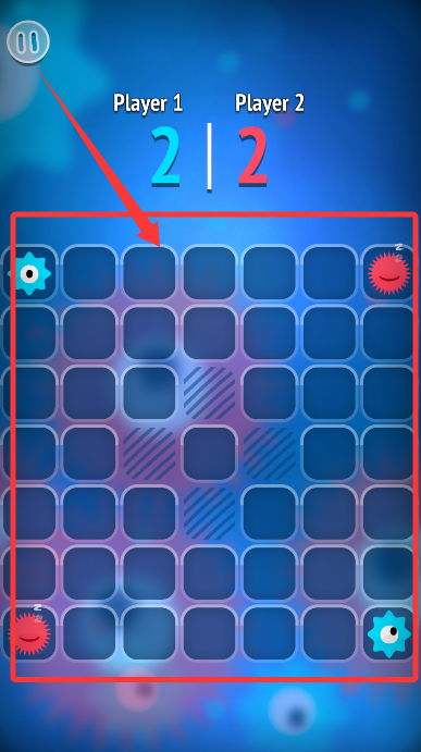 3、观察棋盘布局,按规则轮流操作,先占领格子扩展势力,争取击败对手赢取胜利。