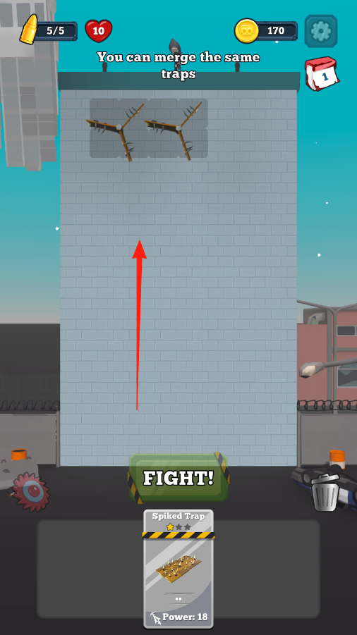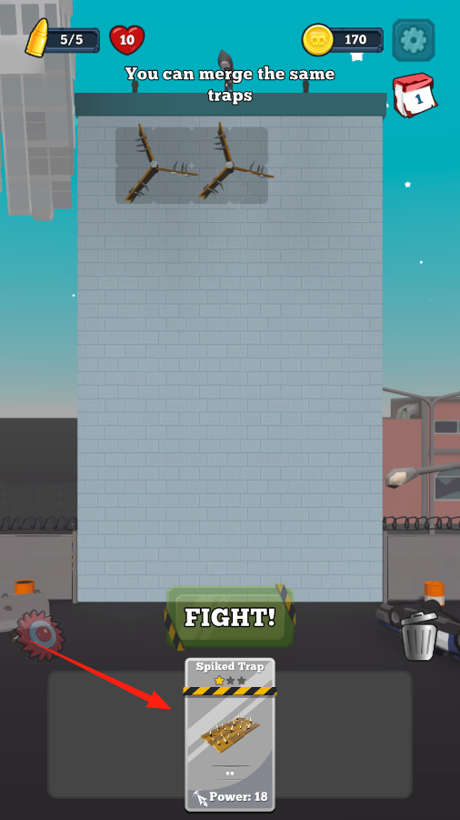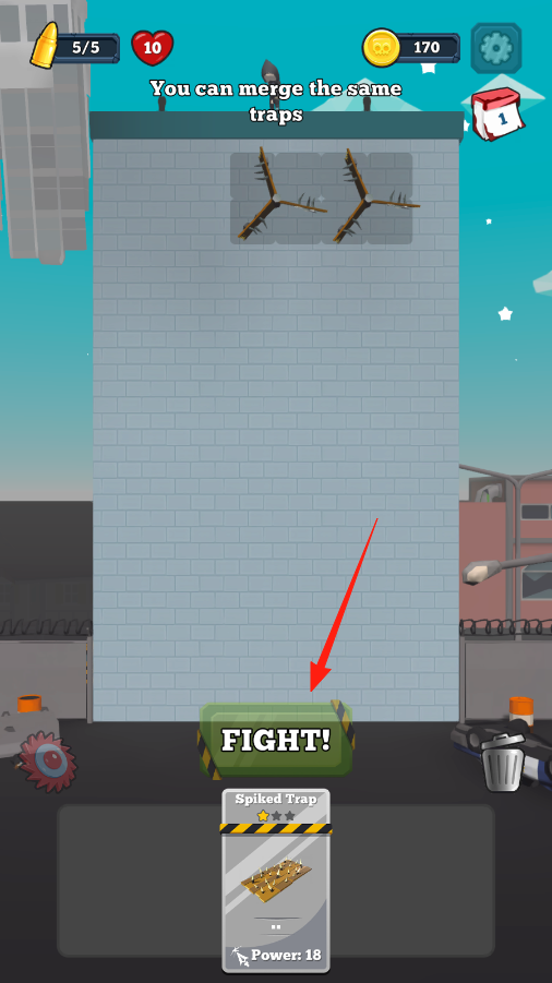 3、布置好陷阱后,点击“FIGHT!”,触发敌人进攻,依靠陷阱伤害,抵御并消灭敌人,推进关卡。