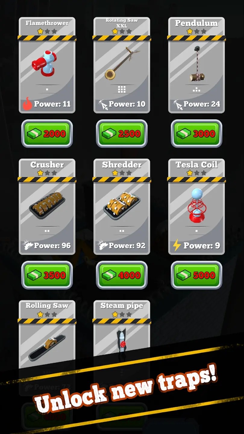 2、点击下方陷阱卡牌,若有相同陷阱,拖动合成,提升等级与威力,增强防御能力。