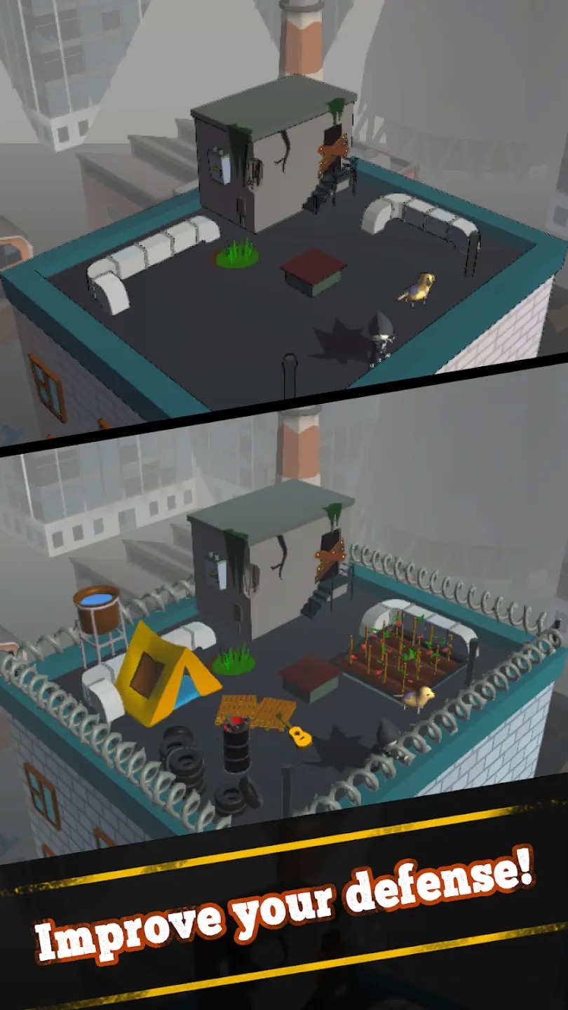 1、屋顶堡垒设定:以“摇摇欲坠的屋顶”为核心场景,空间有限且可能存在破损(如缺口、塌陷区),防御布局需兼顾地形限制,增加了策略的紧迫感和唯一性。