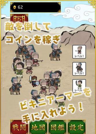 4、趣味互动玩法:通过点击攻击敌军获取金币,用金币为少女们购买比基尼,互动过程增加了游戏的趣味性和玩家的参与感。