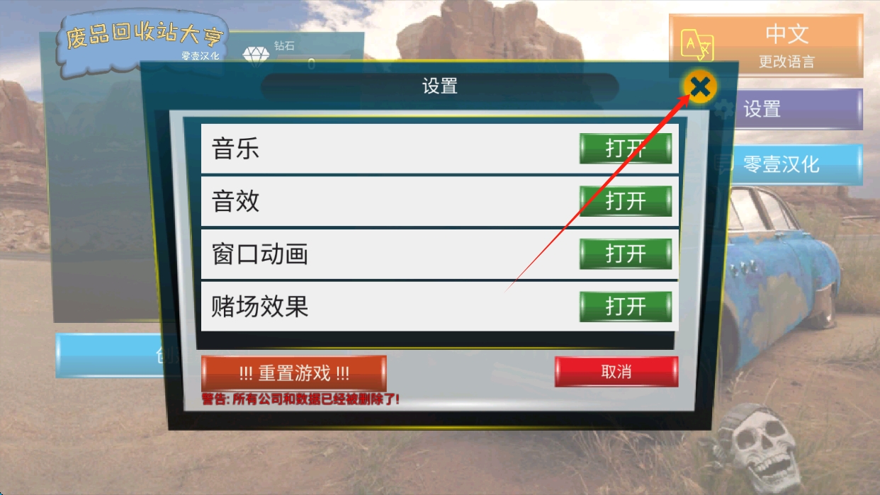 3、点击关闭,收集特定组合的成就奖励解锁限定剧情,如"解锁所有基础场地""累计修复1000辆汽车"。