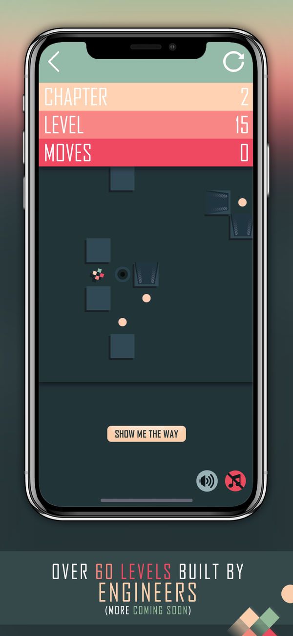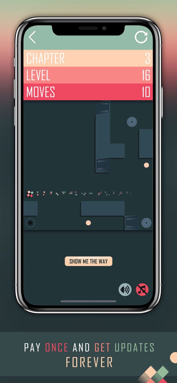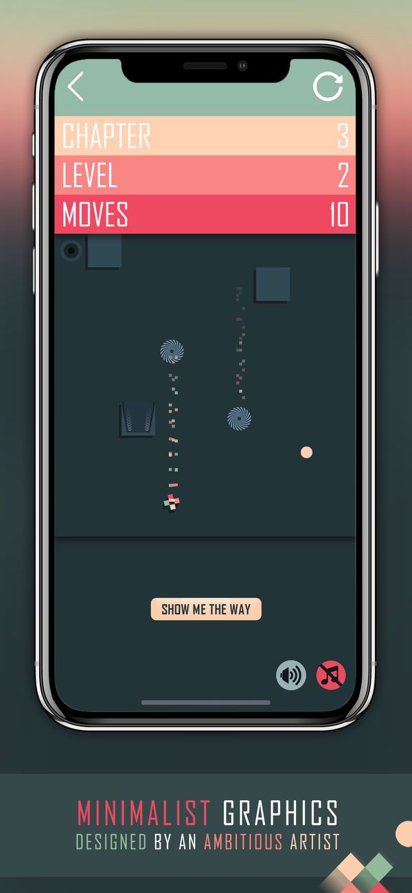 2、通过滑屏操作控制飞行的球球移动,收集沿途的原点,灵活的穿越墙壁进入大门。