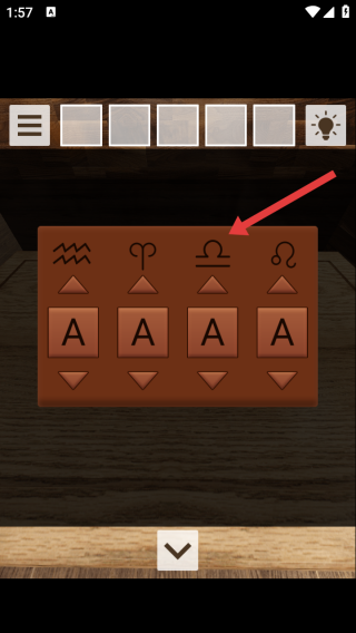 2、观察盒子表面的星座符号(水瓶座、白羊座、天秤座、狮子座),通过上下箭头调整对应按钮,破解符号规律。
