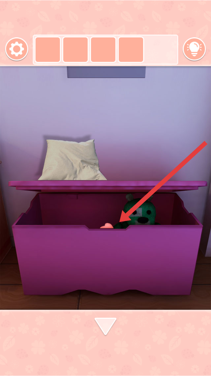 2、互动粉色房间的紫色箱子,打开箱盖后,拾取内部的粉色道具,该物品将存入上方道具栏。