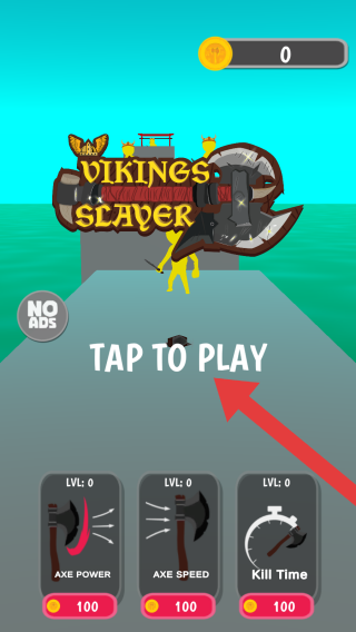 1、画面有【TAPTOPLAY】(点击开始游戏)提示,还有金币显示,属于开局场景,用于引导玩家开始游戏并可进行前期属性强化。