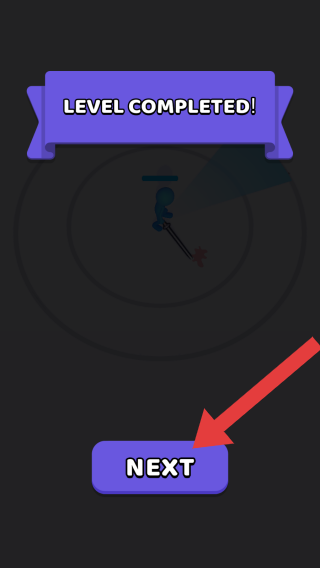 3、显示“LEVELCOMPLETED!”(关卡完成!),下方“NEXT”(下一个)按钮用于进入下一关,属于常见的闯关游戏过关结算场景。