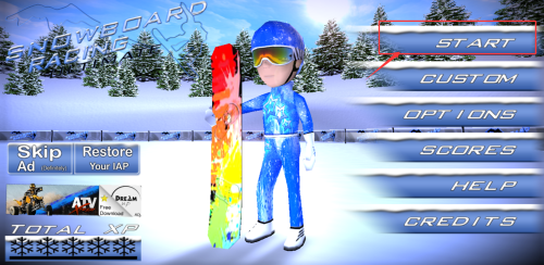 1、游戏启动后点击首页醒目的START按钮,立即展开刺激的雪地竞速之旅。