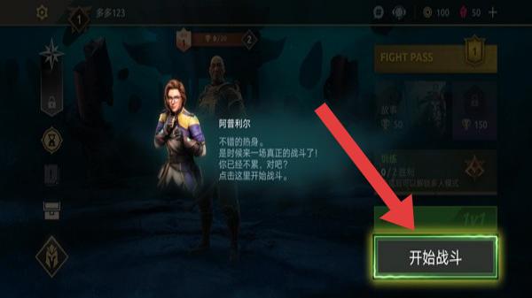 1、角色是“阿蕾莉尔”,显示对话“不错的热身,是时候来一场真正的战斗了!你已经不紧张了,对吧?点击这里开始战斗”,还有【开始战斗】按钮,属于对战准备场景。