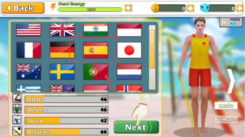 2、深度定制系统收录24支国家队正版队服与18款潮流发型,支持调整球员肤色、身高、肌肉线条等16项身体参数,打造个性化排球战队。