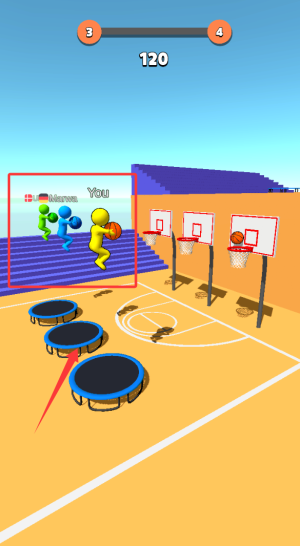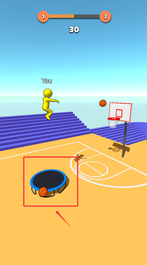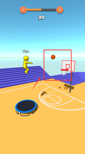 2、弹性投篮模式利用蹦床的反弹特性,需要调整起跳力度与角度完成高难度灌篮。