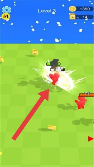 2、显示关卡为Level3,金币数量1350,画面中角色正在攻击红色敌人,产生特效,属于战斗关卡场景。