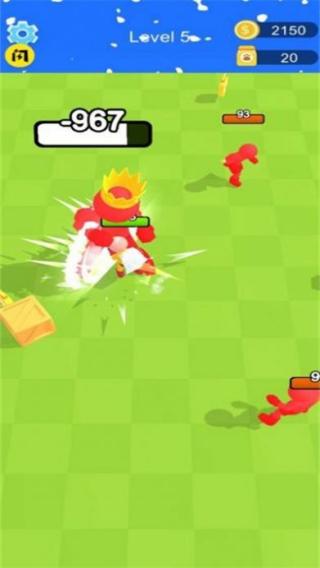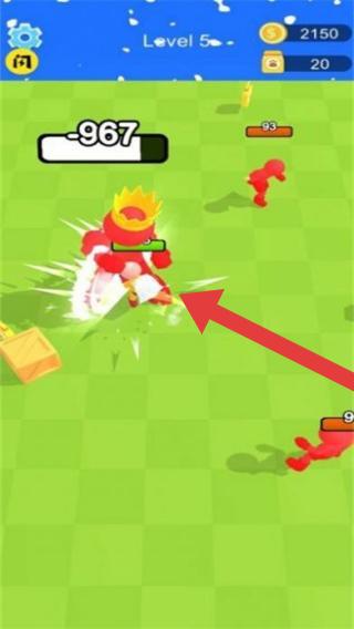 3、画面中头戴皇冠的角色正在攻击红色敌人,上方显示造成-967的伤害数值,属于战斗场景,展现角色攻击敌人的瞬间。