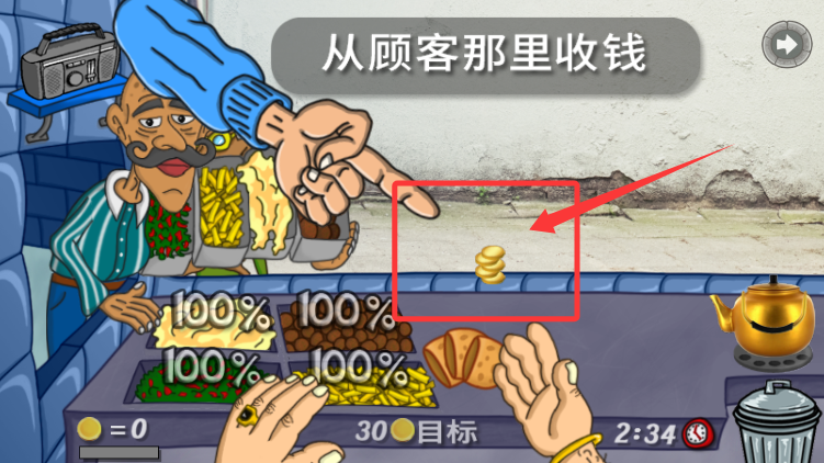 3、完成餐品制作后,点击顾客位置收取对应的金币,积累达成目标金额。