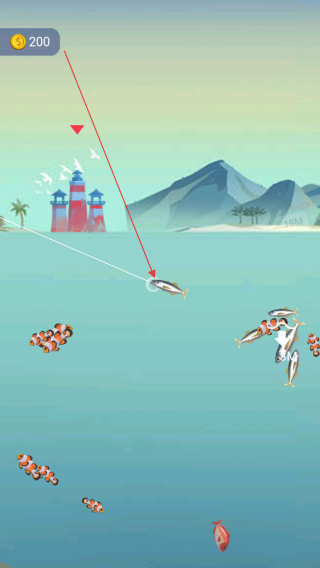 3、鱼咬钩后,把控收线节奏,用获得的金币解锁渔具、升级技能,探索新钓鱼点推进剧情。