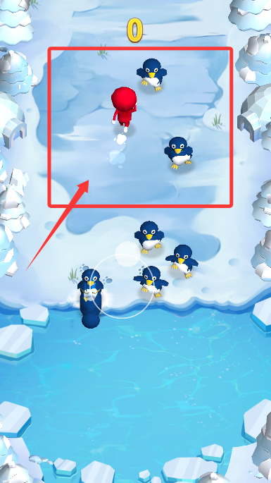 2、移动过程中需灵活调整方向,让红色小人在企鹅群间隙穿梭,别让企鹅触碰到角色。