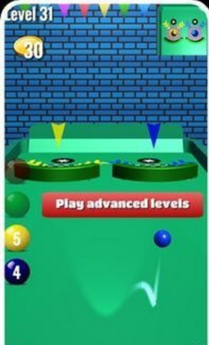 2、观察场景中彩色球洞位置,规划最优碰撞路线。利用墙壁反弹实现迂回进攻,考验空间想象能力。
