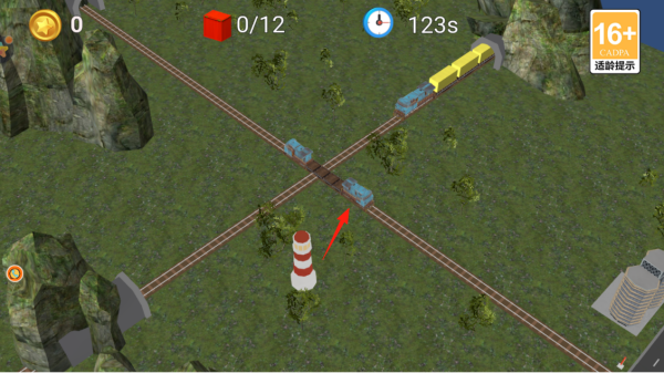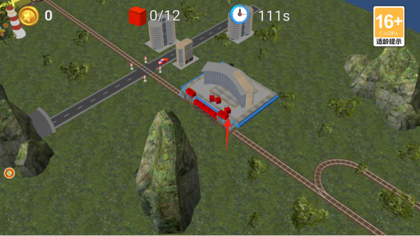 3、到达车站(箭头指向),停靠指定位置,装卸红色货物,完成收集任务,推进关卡。