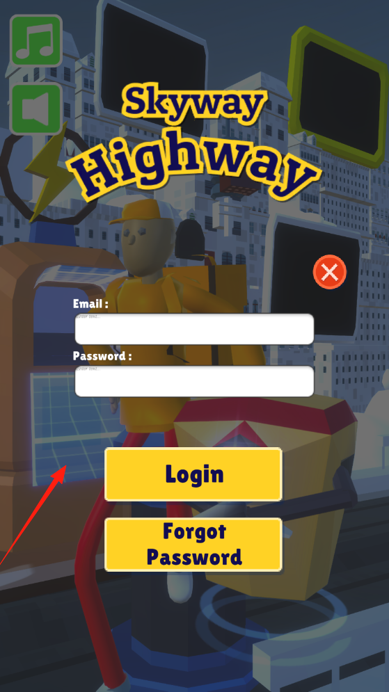 2、在登录页,按箭头指引,填写Email和Password,点击“Login”,尝试登录游戏。