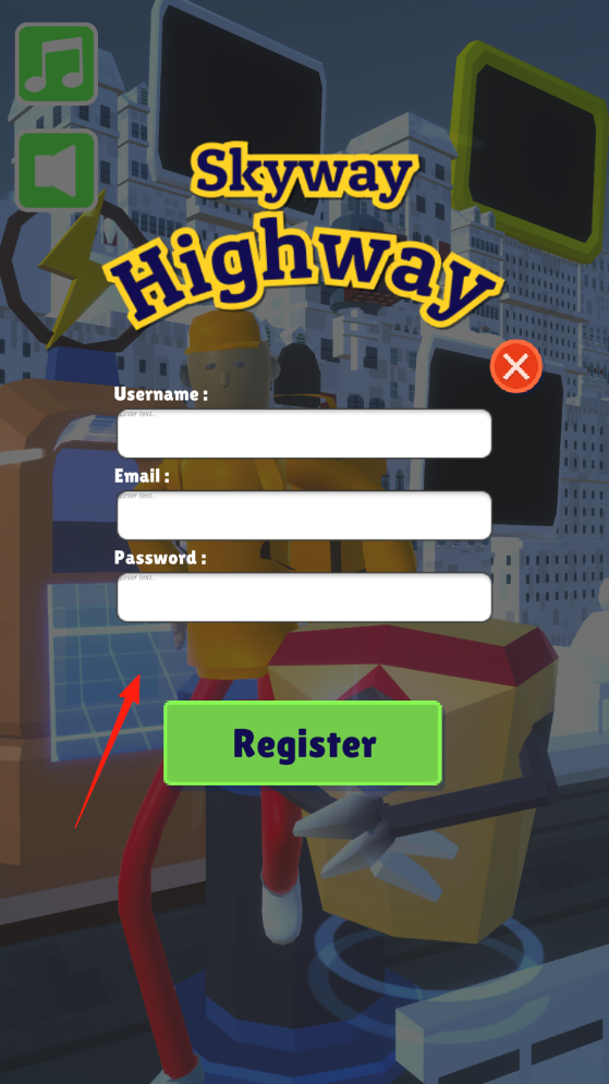 3、若未注册,返回初始页点“Register”,按箭头提示填Username、Email、Password,点“Register”完成账号创建,再登录。