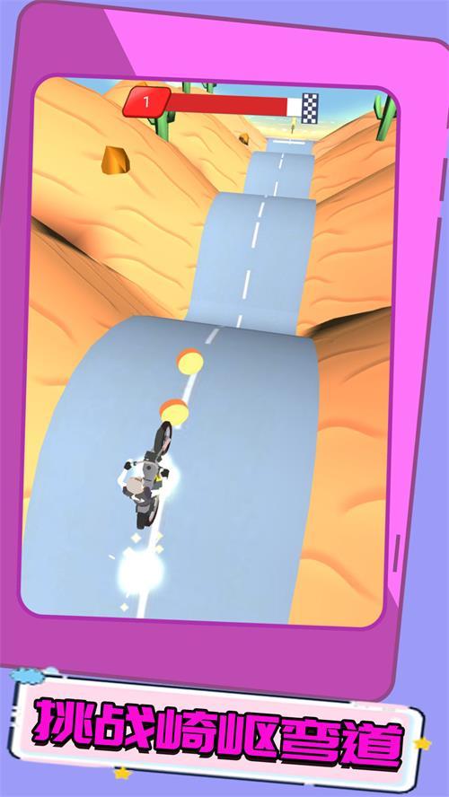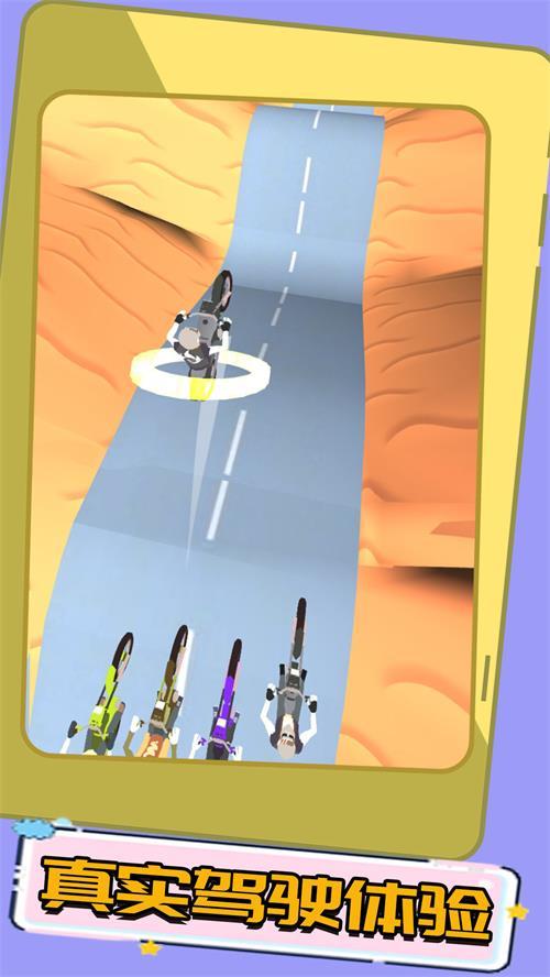 1、技巧主导的竞速体验:胜负不仅取决于速度,更依赖骑行技巧——同样的赛道,擅长切弯的玩家能节省几秒,懂得利用坡道加速的玩家能拉开差距。