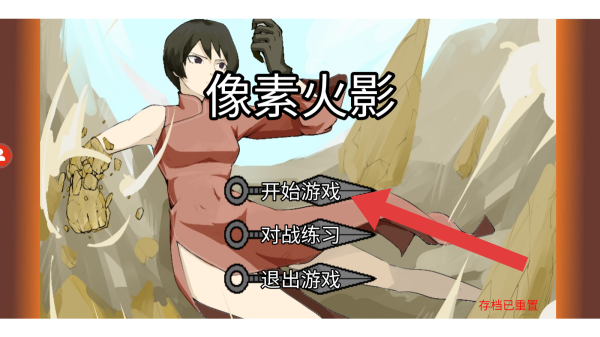 1、画面中有火影忍者中的角色照美冥 ,提供多项选项,右下角提示“存档已重置”,点击【开始游戏】方可进入。