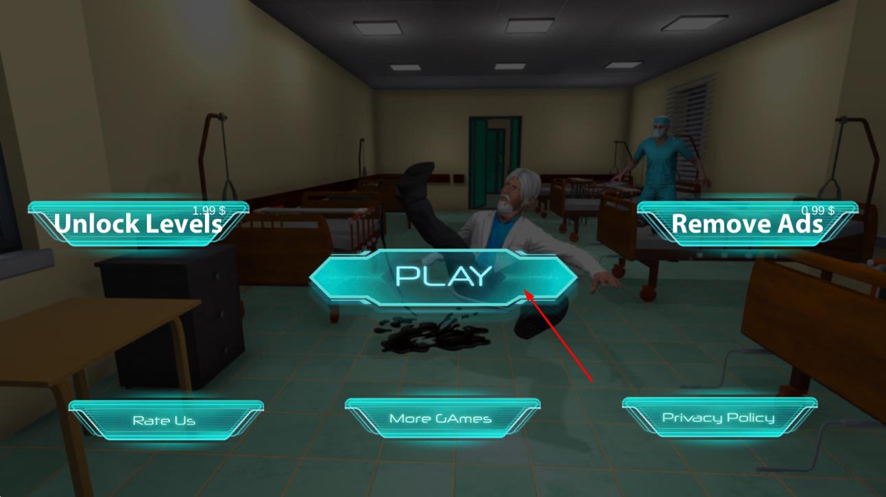 1、沉浸式恐怖医院场景:以废弃医院为背景,打造昏暗走廊、血迹斑斑的病房、摇晃的灯光等元素,搭配逼真音效,营造出压抑惊悚的氛围,让玩家身临其境。