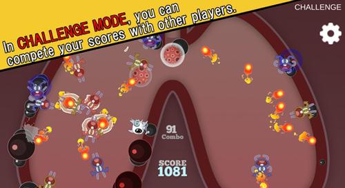 1、尼古丁清除操作:核心为点击屏幕上出现的尼古丁分子将其清除,根据不同模式要求,在规定时间内完成定量清除,或在生存模式中持续抵御尼古丁的侵袭。