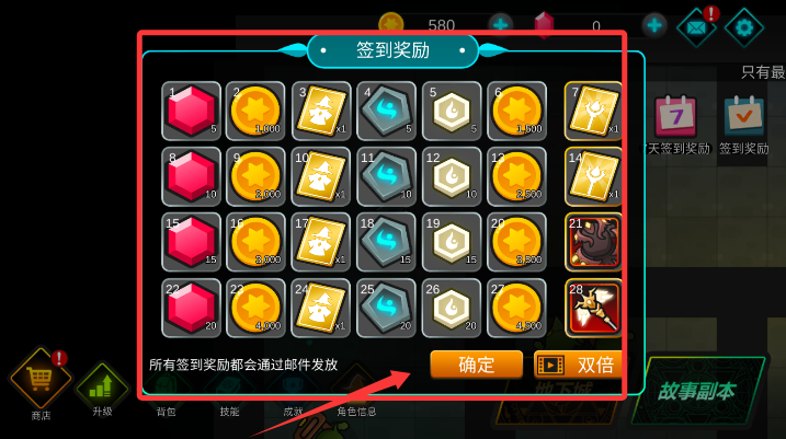 3、系统自动弹出每日登录奖励面板,查阅物品详情后点击领取确认键。