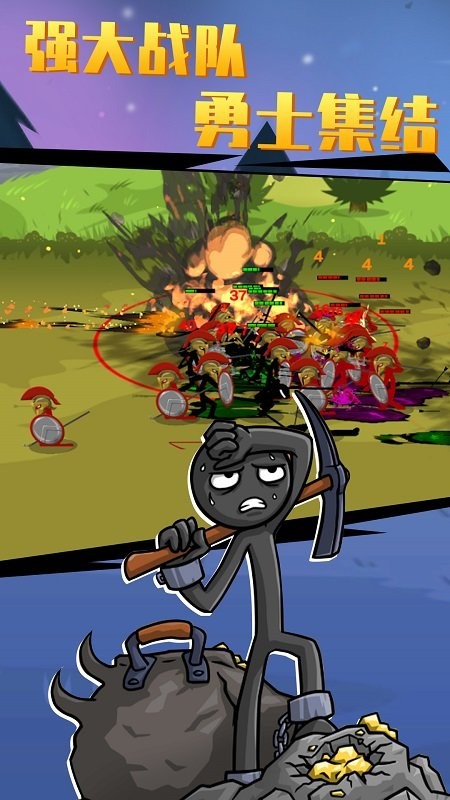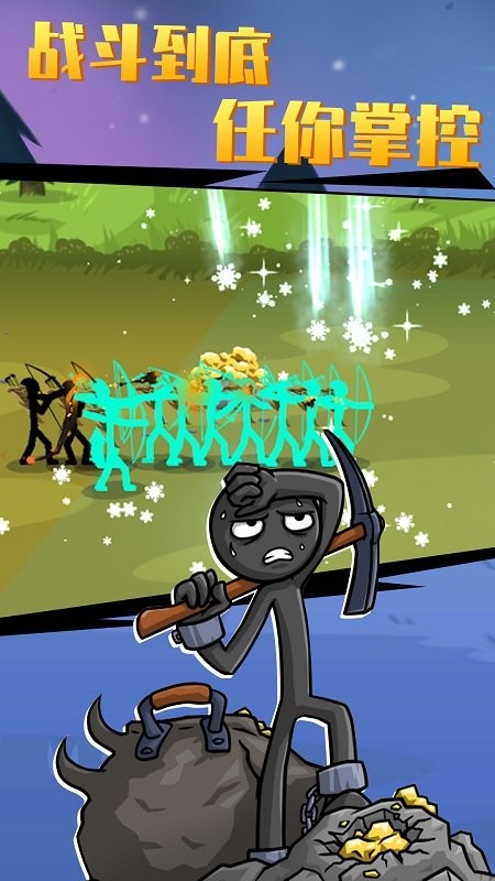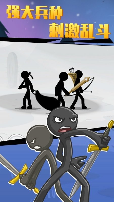 2、深度兵种养成:每个火柴人兵种都可通过升级解锁新技能,同一兵种能发展出不同战斗方向,提升策略多样性。