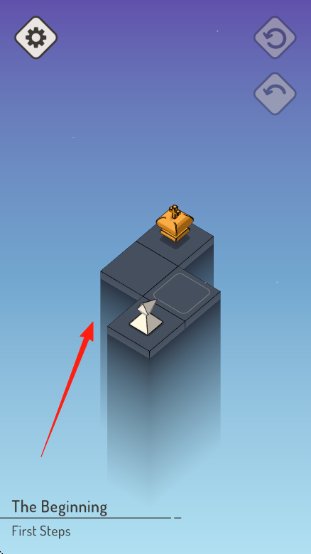 1、在“TheBeginning-FirstSteps”关卡,点击白色棋子(箭头指向),沿棋盘路径,向金色目标移动。