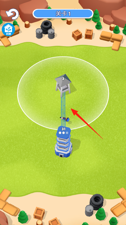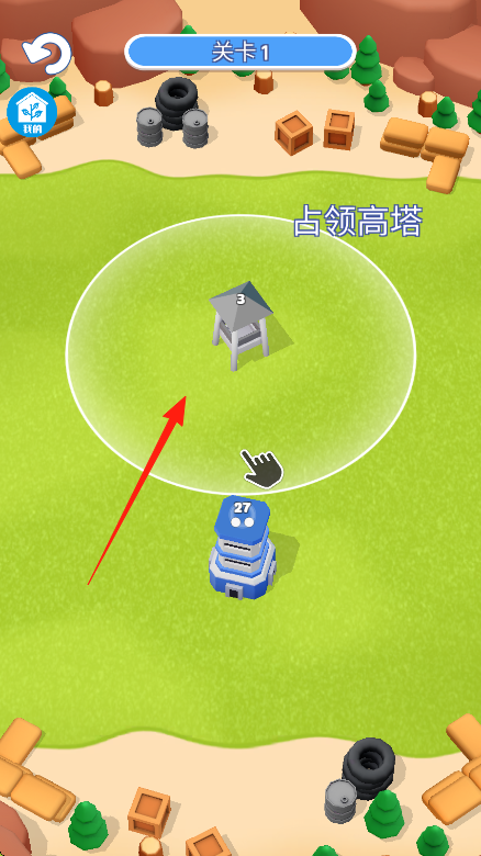 1、在关卡1,点击蓝色主塔,向“占领高塔”(箭头指向)派遣兵力,夺取灰色塔楼。
