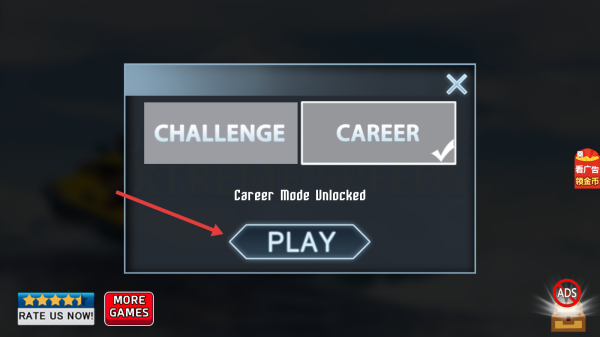 1、点击【PLAY】,选“CAREER”模式,驾驶水上摩托艇,开启水上竞速挑战,熟悉玩法。