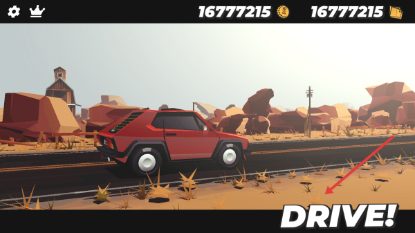 1、点击【DRIVE!】,驾驶红色越野车,开启荒漠公路竞速,借左右箭头按键,熟悉转向操作逻辑。