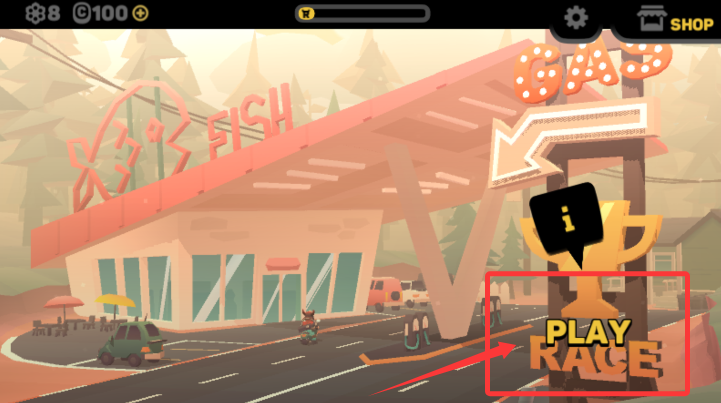 1、启动程序点击进入游戏,将化身为赛车手,在不同的环境的赛道里完成挑战。