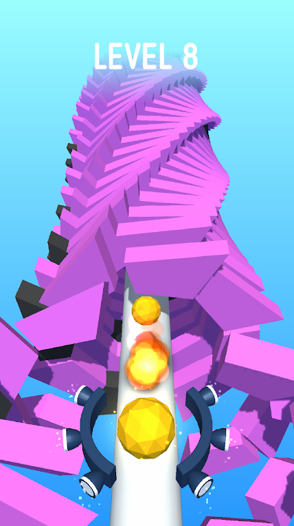 1、研习螺旋堆栈结构与颜色分布,优先选择高收益路线,合理规划撞击角度,连续成功击碎触发连击奖励,全面考验玩家的反应速度、策略规划与操作技巧。