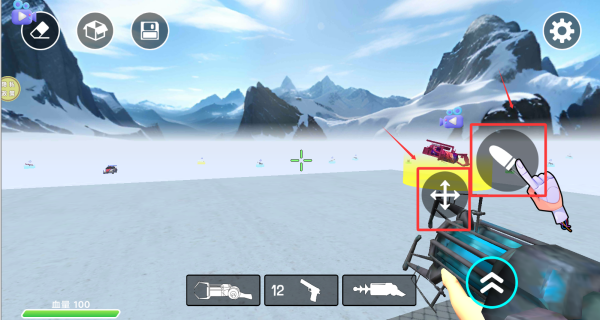 4、右边的上下左右的箭头指示按钮是瞄准敌人,子弹的图案是发射按钮。