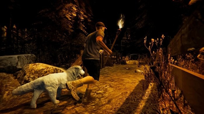 3、按照任务目标“Find the camp site...”,在场景中寻找营地,利用道具照明、应对危险,推进剧情。