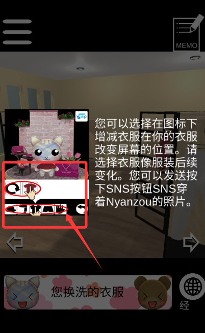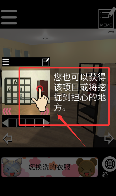 2、在房间场景,依据提示点击指定区域,探索获取换衣相关项目线索。