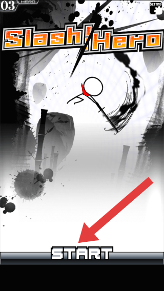 1、“START”是开始游戏的按钮,游戏以水墨风格呈现,火柴人角色持武器,充满动作格斗氛围,点击【START】可进入体验战斗玩法。