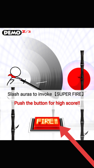 2、画面中提示通过挥砍光环来触发【超级火焰】,点击【FIRE!】按钮以获取高分,采用火柴人题材,风格偏向动作格斗。