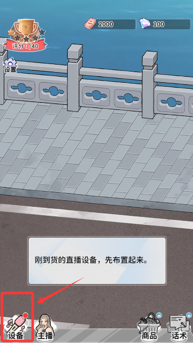 1、进入游戏主菜单,轻触左下角"设备"图标,开始配置新购置的直播装备。
