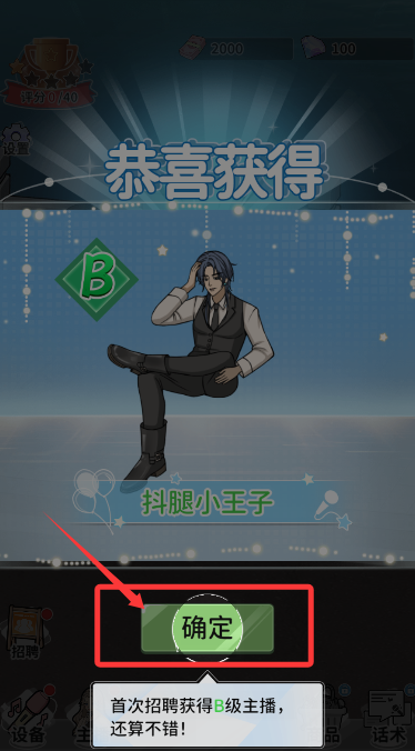 3、成功聘用B级资质主播后,点击"确认"按钮完成签约流程并关闭弹窗。