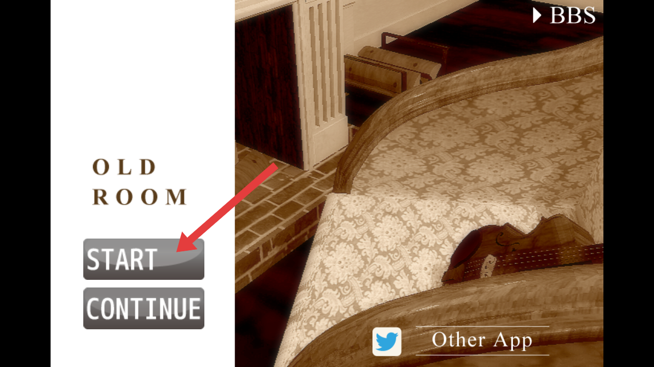 1、进入从书中的老房间逃离的游戏主界面后,操控者需要点击【START】的按钮,正式开启解谜的冒险。